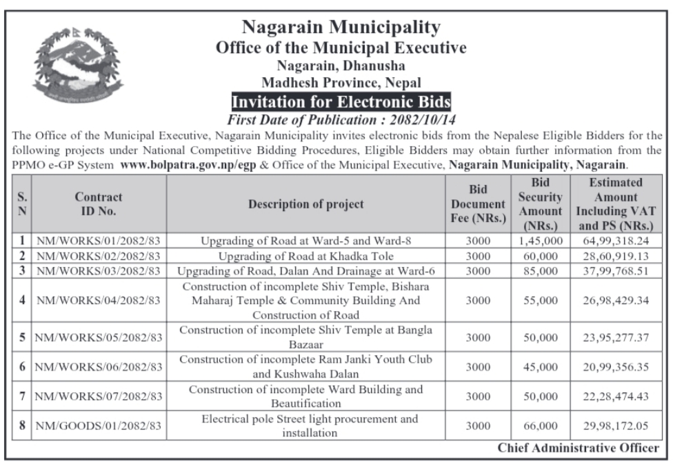 Notice regarding Invitation for Electronic Bids